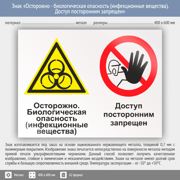 Знак «Осторожно - биологическая опасность (инфекционные вещества). Доступ посторонним запрещен», КЗ-51 (металл, 600х400 мм) в Магнитогорске купить