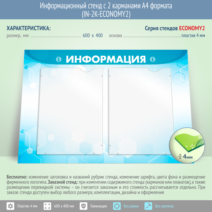 Информационный стенд с 2 карманами А4 формата (IN-2K-ECONOMY2) в Магнитогорске купить