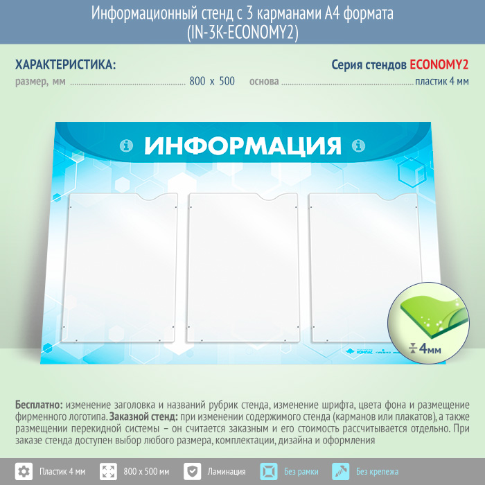Информационный стенд с 3 карманами А4 формата (IN-3K-ECONOMY2) в Магнитогорске купить