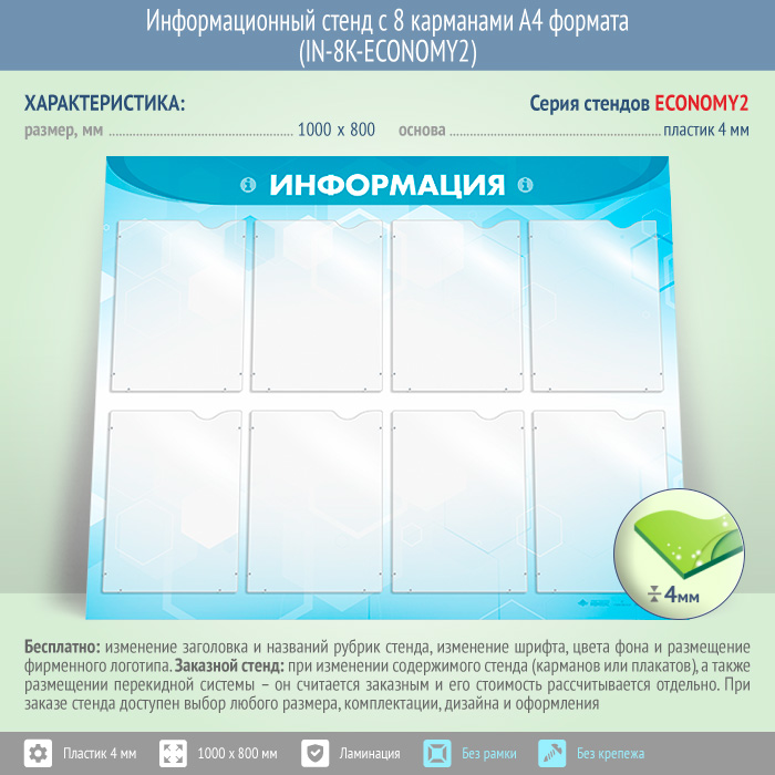 Информационный стенд с 8 карманами А4 формата (IN-8K-ECONOMY2) в Магнитогорске купить