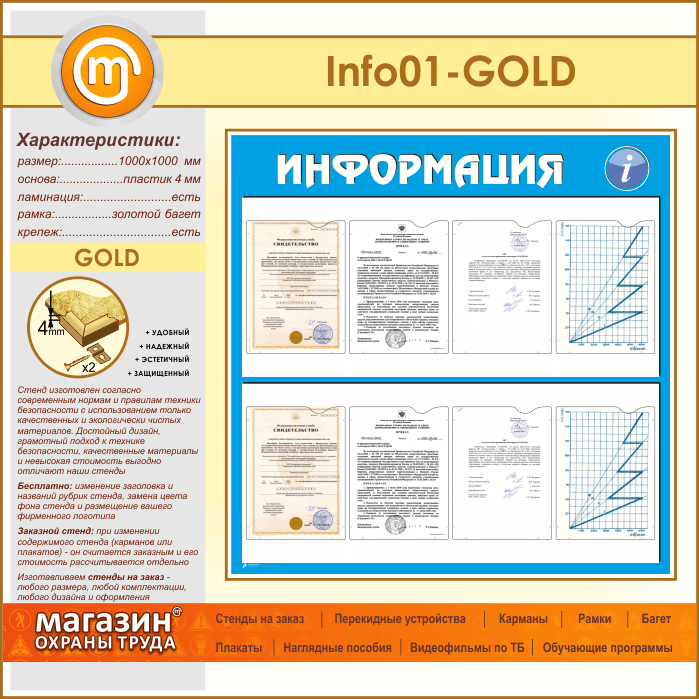 Стенд «Информация» с 8 карманами А4 формата (IN-01-GOLD) в Магнитогорске купить