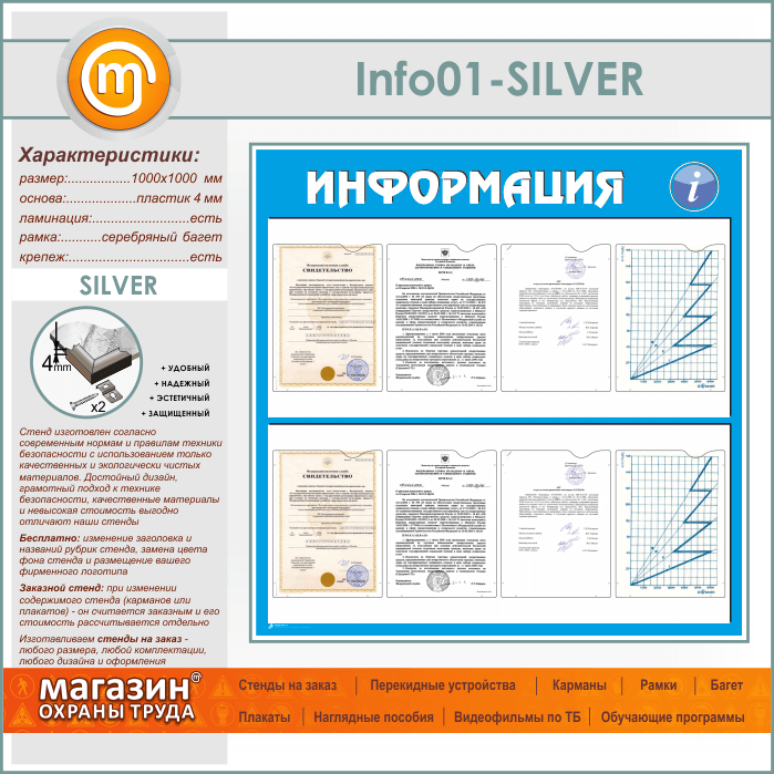 Стенд «Информация» с 8 карманами А4 формата (IN-01-SILVER) в Магнитогорске купить