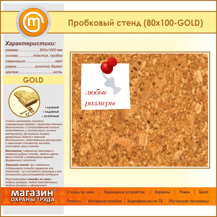 Пробковая доска, 100х80 см (IN-05-GOLD) в Магнитогорске купить
