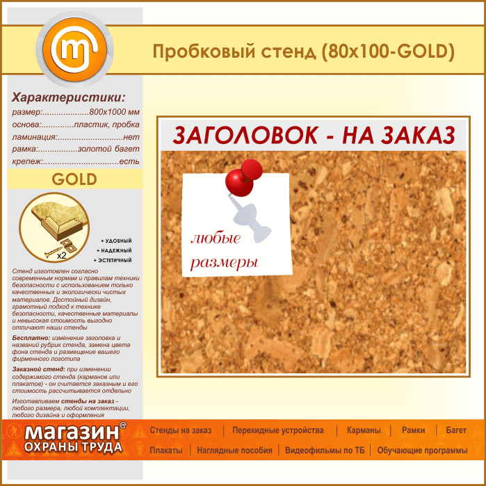 Пробковая доска с заголовком, 100х80 см (IN-06-GOLD) в Магнитогорске купить