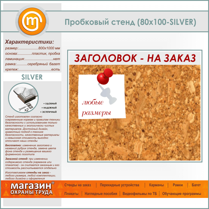 Пробковая доска с заголовком, 100х80 см (IN-06-SILVER) в Магнитогорске купить