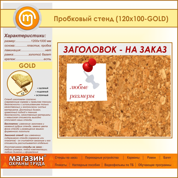 Пробковая доска с заголовком, 120х100 см (IN-06-GOLD) в Магнитогорске купить