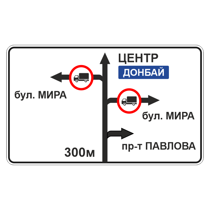 Дорожный знак 6.9.1 «Предварительный указатель направлений» (металл 0,8 мм, С/О пленка: тип В алмазная) в Магнитогорске купить