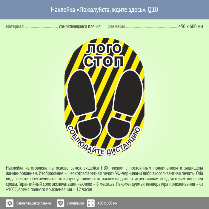 Наклейка на пол «Пожалуйста, ждите здесь», Q10 (пленка c ламинированием, 450х600 мм) в Магнитогорске купить