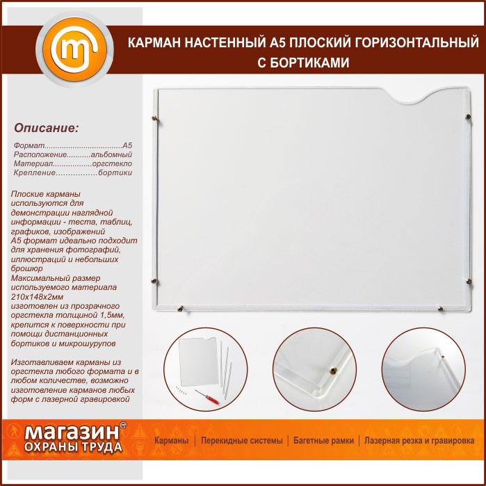Карман настенный А5 плоский горизонтальный с бортиками в Магнитогорске купить