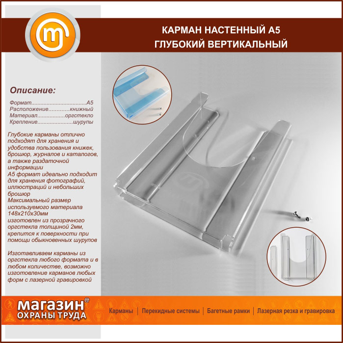 Карман настенный А5 объемный вертикальный в Магнитогорске купить