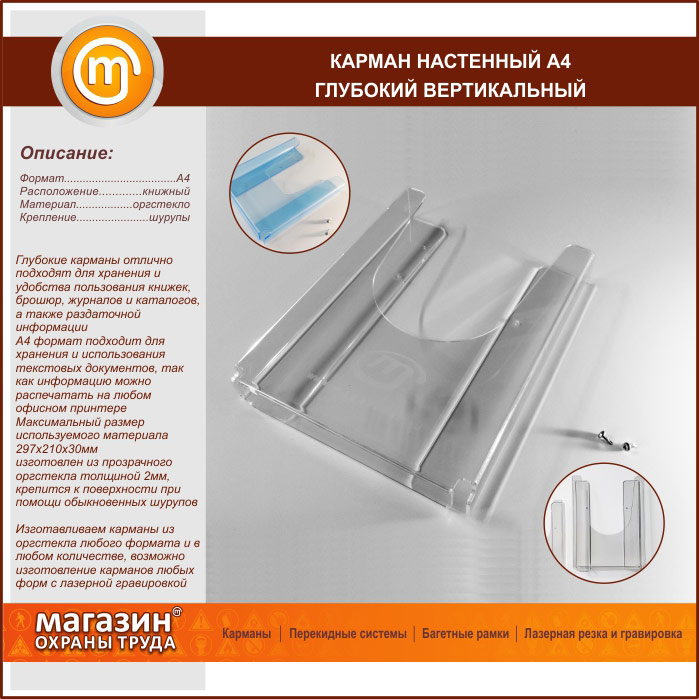 Карман настенный А4 объемный вертикальный в Магнитогорске купить
