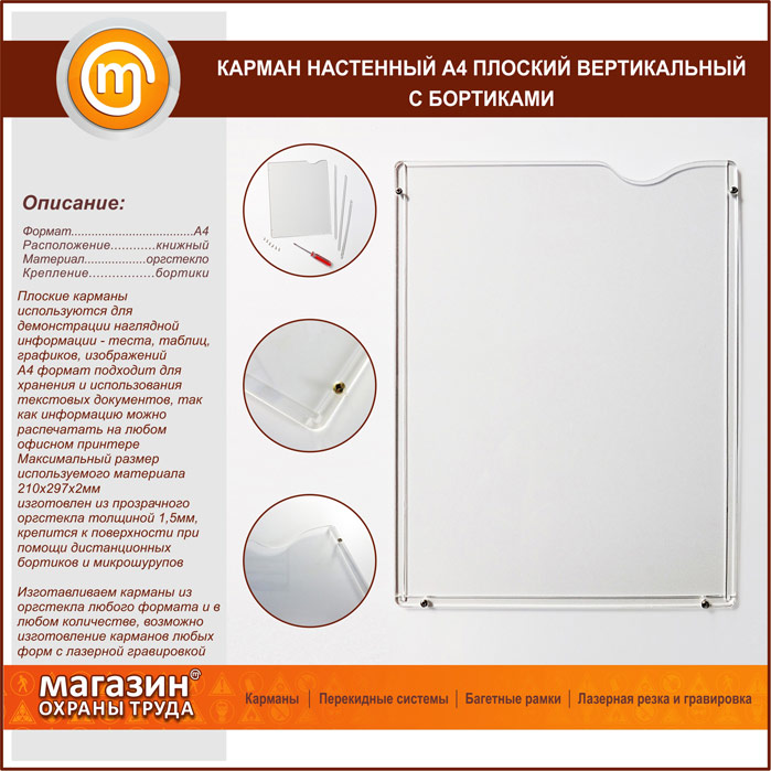 Карман настенный А4 плоский вертикальный с бортиками в Магнитогорске купить