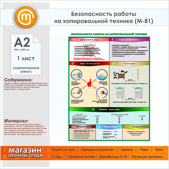Плакат «Безопасность работы на копировальной технике» (М-81, ламинированная бумага, А2, 1 лист) в Магнитогорске купить