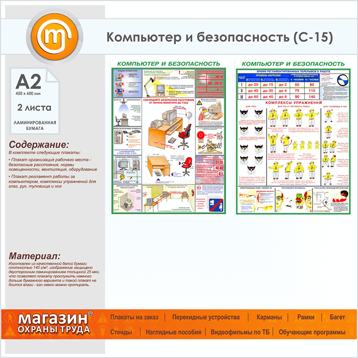 Плакаты «Компьютер и безопасность» (С-15, ламинированная бумага, А2, 2 листа) в Магнитогорске купить