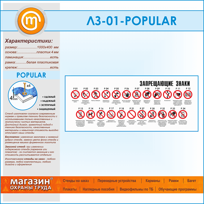 Стенд «Запрещающие знаки» (LZ-01-POPULAR) в Магнитогорске купить