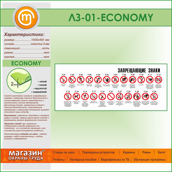 Стенд «Запрещающие знаки» (LZ-01-ECONOMY) в Магнитогорске купить