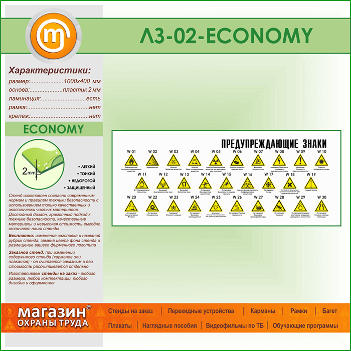 Стенд «Предупреждающие знаки» (LZ-02-ECONOMY) в Магнитогорске купить