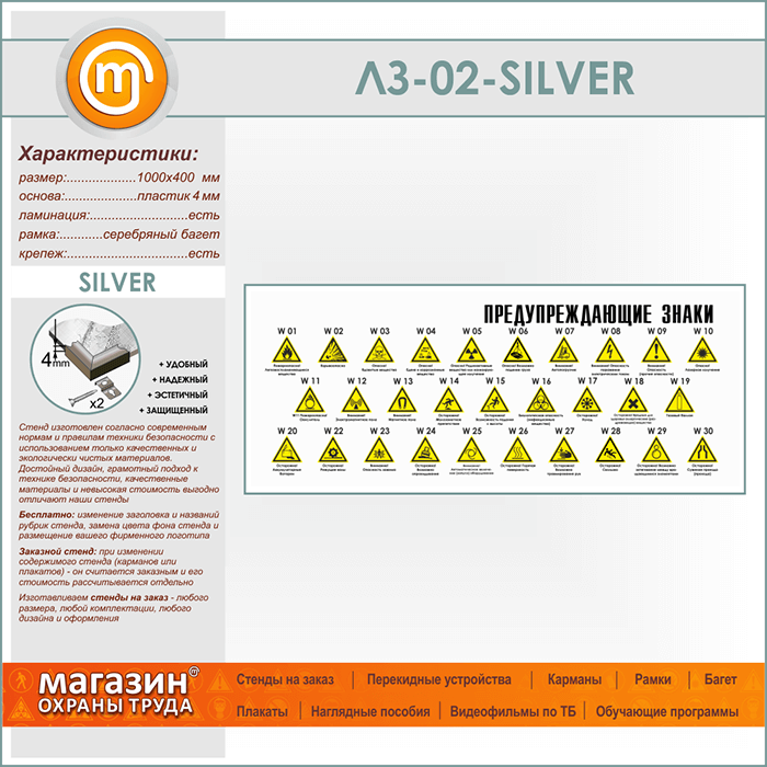 Стенд «Предупреждающие знаки» (LZ-02-SILVER) в Магнитогорске купить