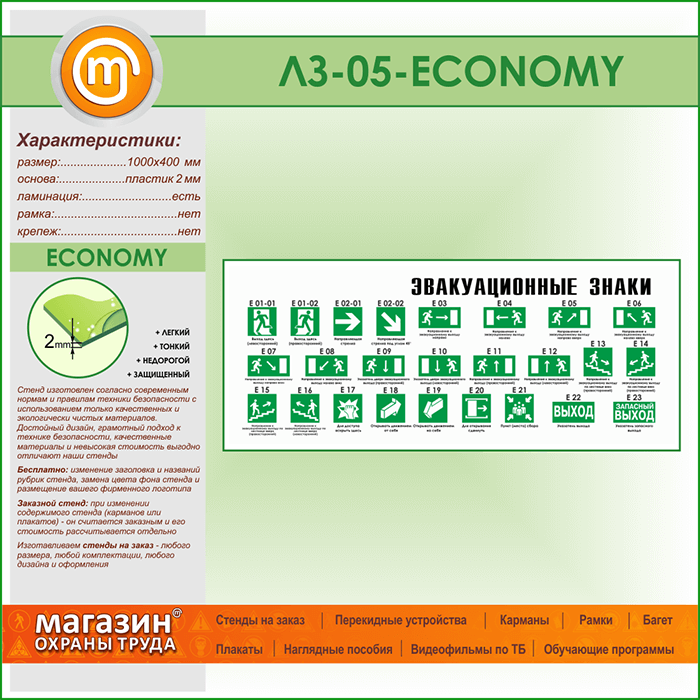 Стенд «Эвакуационные знаки» (LZ-05-ECONOMY) в Магнитогорске купить