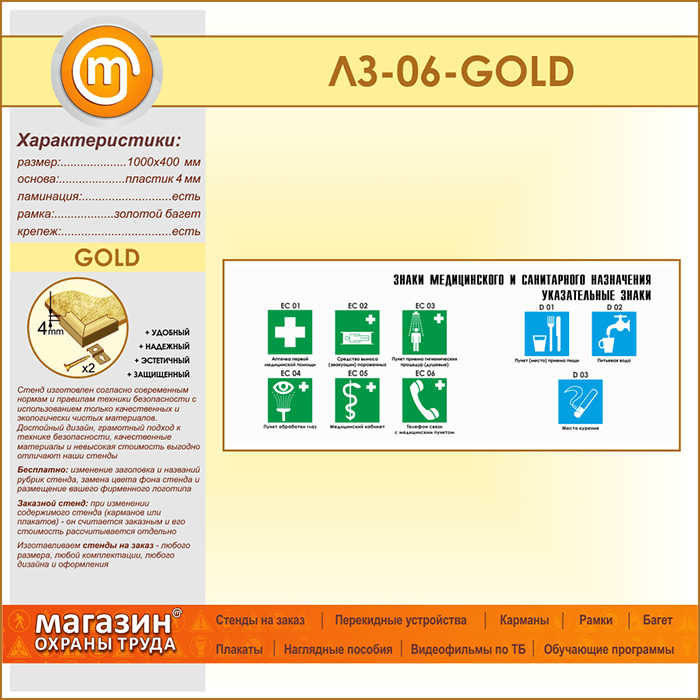 Стенд «Знаки медицинского и санитарного назначения. Указательные знаки» (LZ-06-GOLD) в Магнитогорске купить
