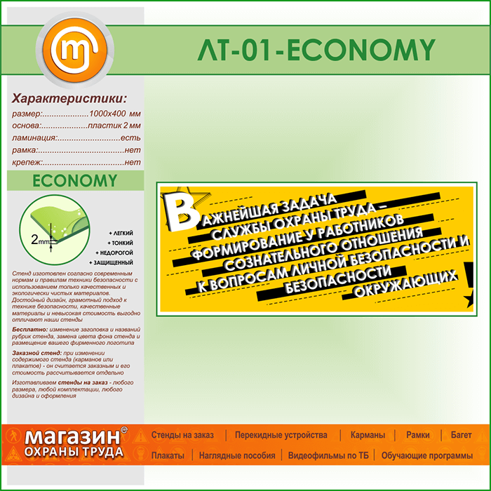Лозунг «Важнейшая задача службы охраны труда...» (LT-01-ECONOMY) в Магнитогорске купить
