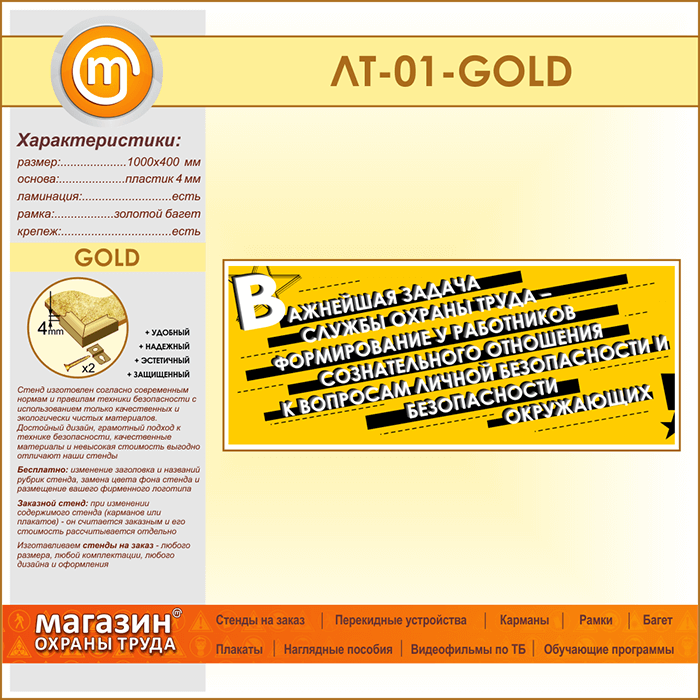 Лозунг «Важнейшая задача службы охраны труда...» (LT-01-GOLD) в Магнитогорске купить