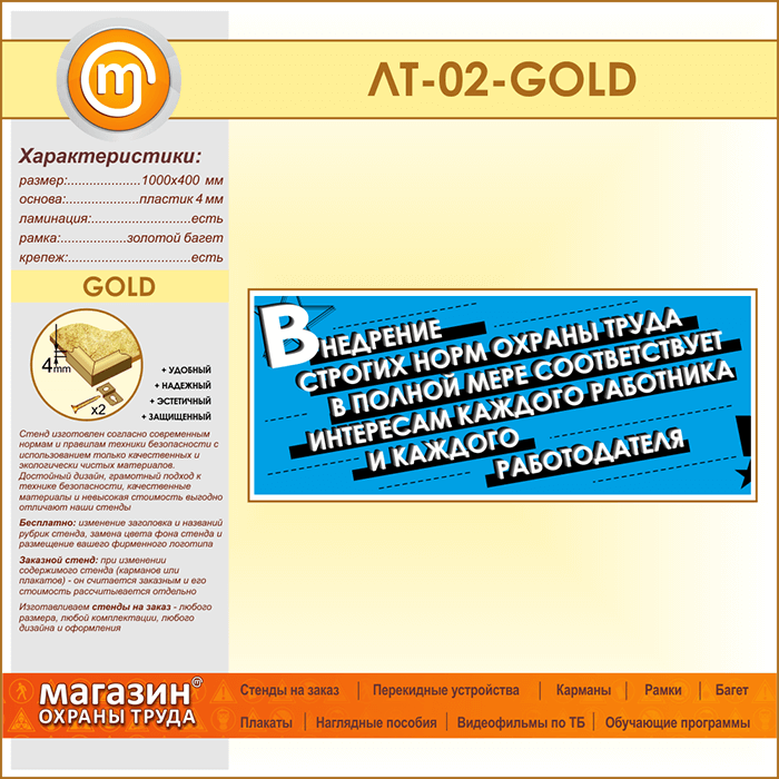 Лозунг «Внедрение строгих норм охраны труда...» (LT-02-GOLD) в Магнитогорске купить