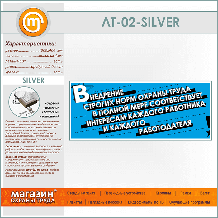 Лозунг «Внедрение строгих норм охраны труда...» (LT-02-SILVER) в Магнитогорске купить