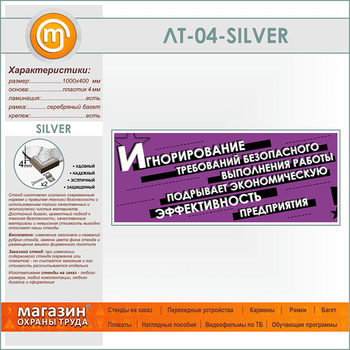 Лозунг «Игнорирование безопасного выполнения работы...» (LT-04-SILVER) в Магнитогорске купить