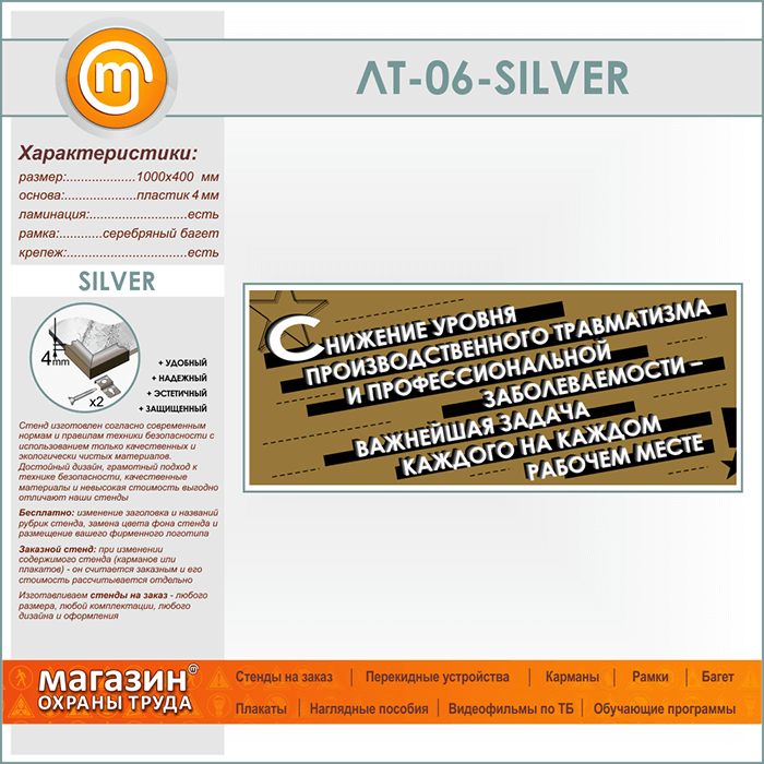Лозунг «Снижение уровня производственного травматизма...» (LT-06-SILVER) в Магнитогорске купить