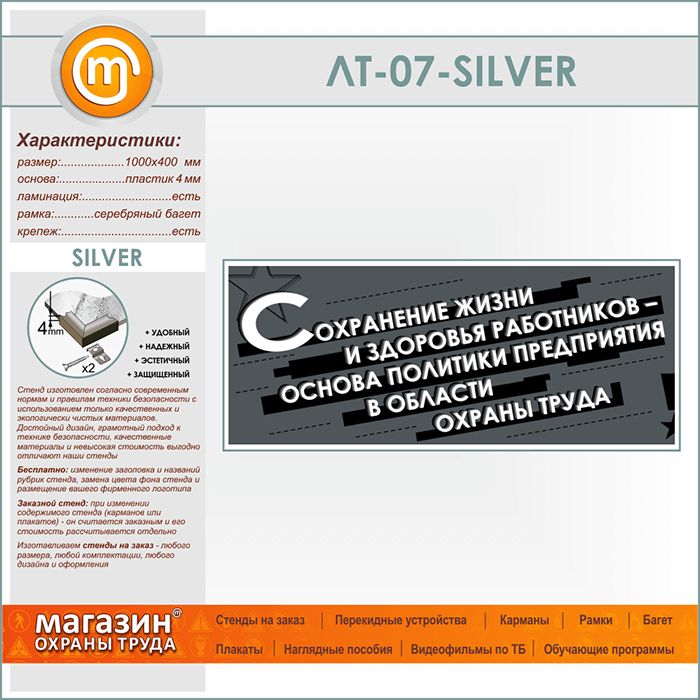 Лозунг «Сохранение жизни и здоровья работников...» (LT-07-SILVER) в Магнитогорске купить