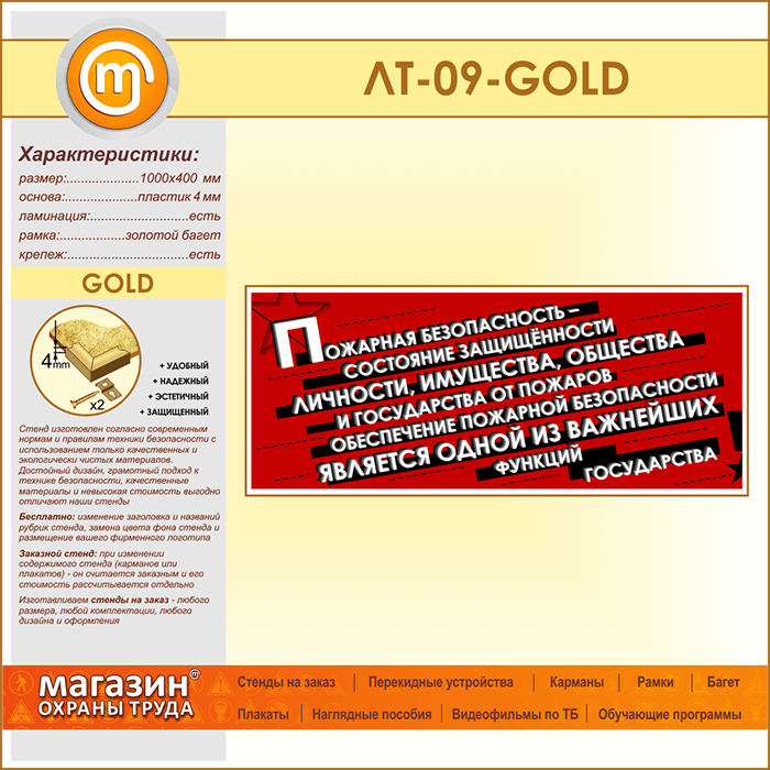 Лозунг «Пожарная безопасность - состояние защищенности...» (LT-09-GOLD) в Магнитогорске купить