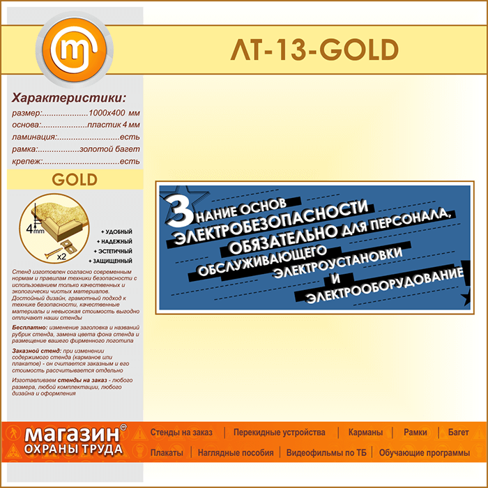 Лозунг «Знание основ электробезопасности обязательно...» (LT-13-GOLD) в Магнитогорске купить
