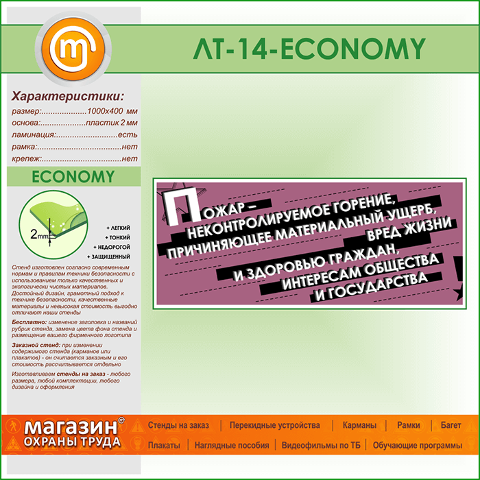 Лозунг «Пожар - неконтроллируемое горение...» (LT-14-ECONOMY) в Магнитогорске купить