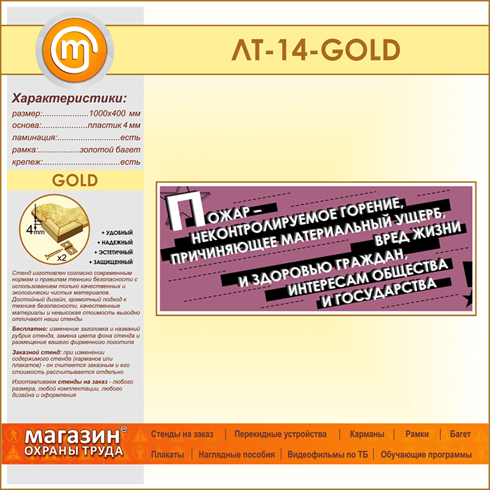 Лозунг «Пожар - неконтроллируемое горение...» (LT-14-GOLD) в Магнитогорске купить