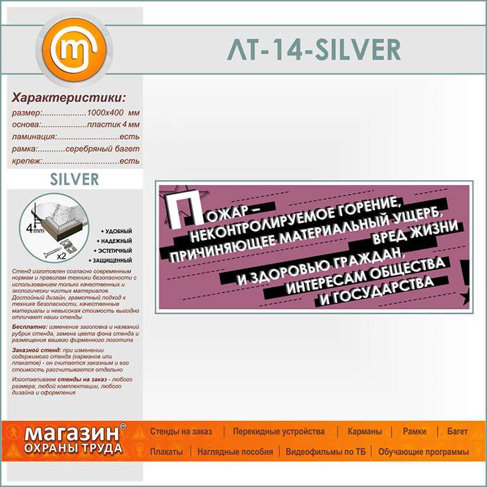 Лозунг «Пожар - неконтроллируемое горение...» (LT-14-SILVER) в Магнитогорске купить