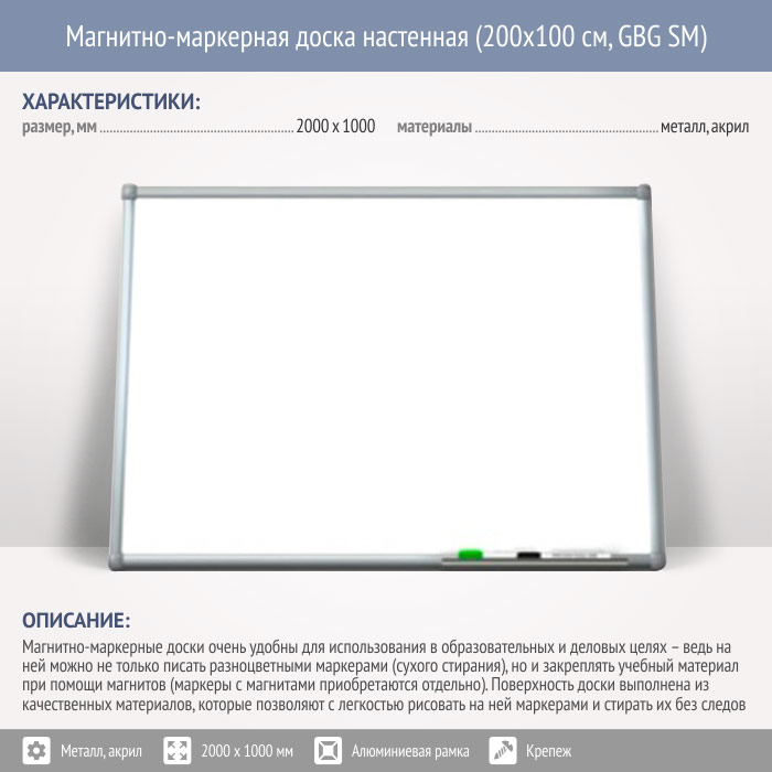 Магнитно-маркерная доска настенная (200x100 см, GBG SM) в Магнитогорске купить