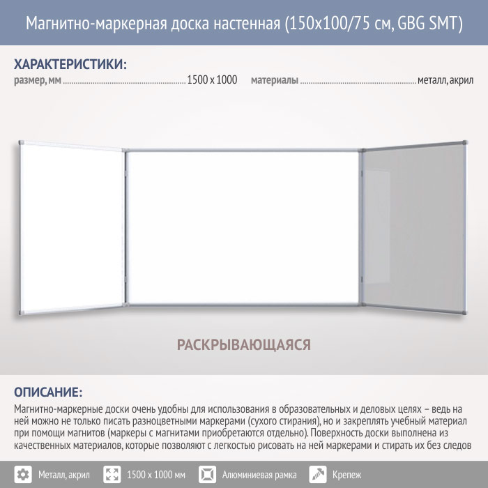 Магнитно-маркерная доска настенная (150x100/75 см, GBG SMT) в Магнитогорске купить
