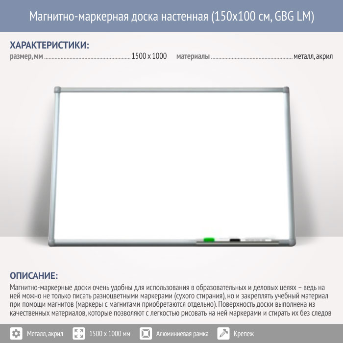 Магнитно-маркерная доска настенная (150x100 см, GBG LM) в Магнитогорске купить
