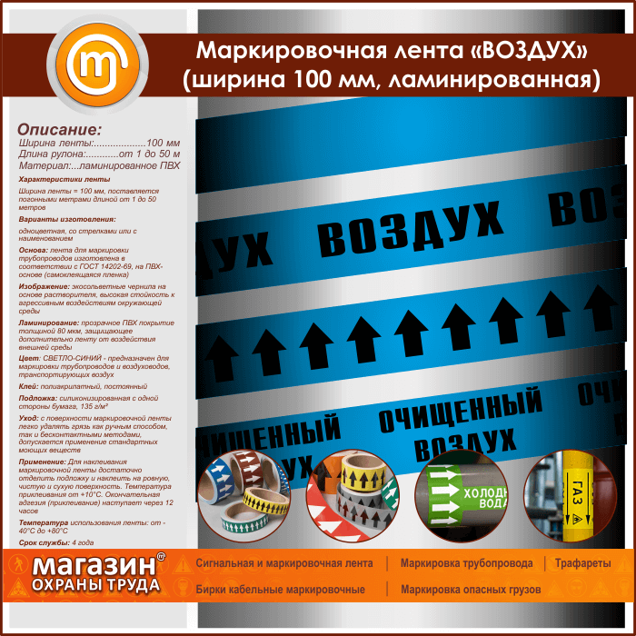 Маркировочная лента «ВОЗДУХ» (ширина 100 мм, самоклеящаяся плёнка) в Магнитогорске купить