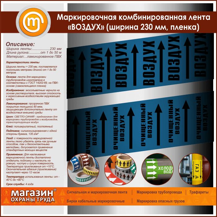 Маркировочная комбинированная лента «ВОЗДУХ» (ширина 230 мм, самоклеящаяся плёнка с ламинированием) в Магнитогорске купить