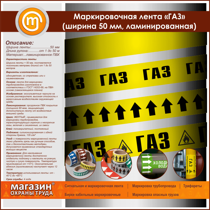 Маркировочная лента «ГАЗ» (ширина 50 мм, самоклеящаяся плёнка) в Магнитогорске купить