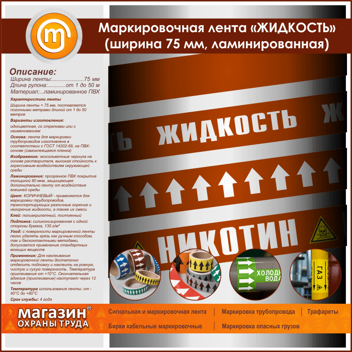 Маркировочная лента «ЖИДКОСТЬ» (ширина 75 мм, самоклеящаяся плёнка) в Магнитогорске купить