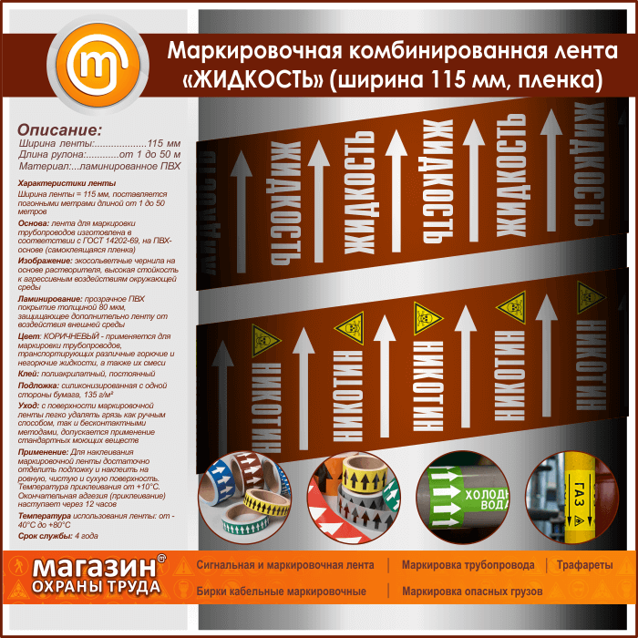 Маркировочная комбинированная лента «ЖИДКОСТЬ» (ширина 115 мм, самоклеящаяся плёнка) в Магнитогорске купить