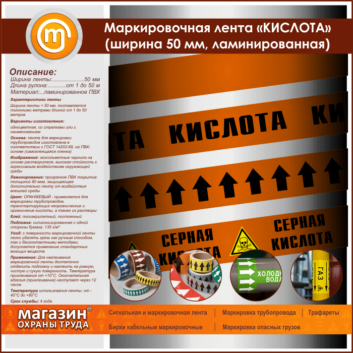 Маркировочная лента «КИСЛОТА» (ширина 50 мм, самоклеящаяся плёнка с ламинированием) в Магнитогорске купить