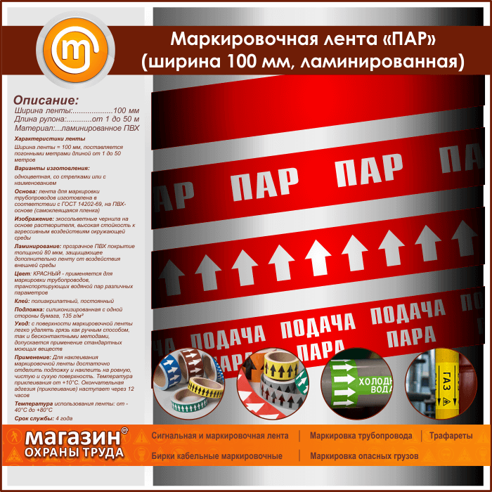Маркировочная лента «ПАР» (ширина 100 мм, самоклеящаяся плёнка) в Магнитогорске купить