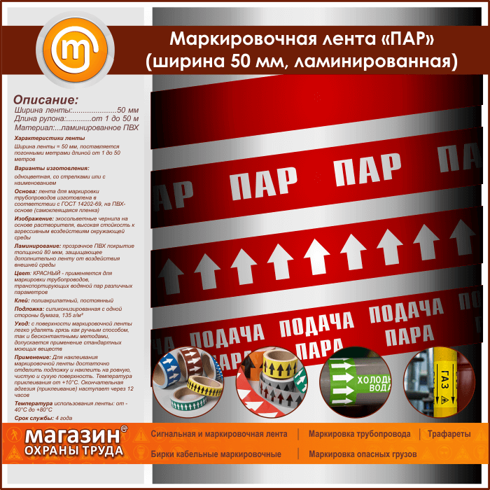 Маркировочная лента «ПАР» (ширина 50 мм, самоклеящаяся плёнка с ламинированием) в Магнитогорске купить