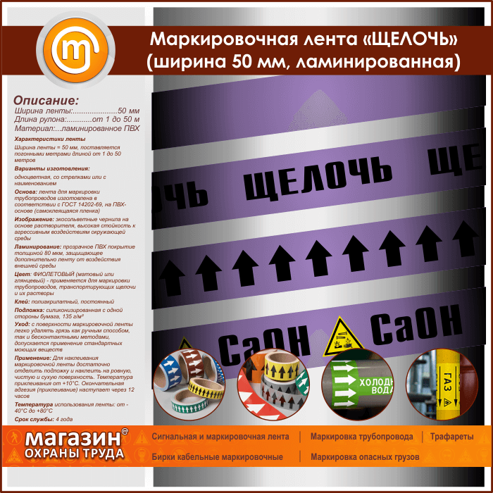 Маркировочная лента «ЩЕЛОЧЬ» (ширина 50 мм, самоклеящаяся плёнка) в Магнитогорске купить