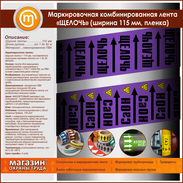 Маркировочная комбинированная лента «ЩЕЛОЧЬ» (ширина 115 мм, самоклеящаяся плёнка с ламинированием) в Магнитогорске купить