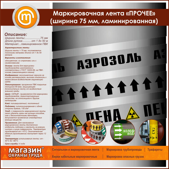 Маркировочная лента «ПРОЧИЕ ВЕЩЕСТВА» (ширина 75 мм, самоклеящаяся плёнка) в Магнитогорске купить